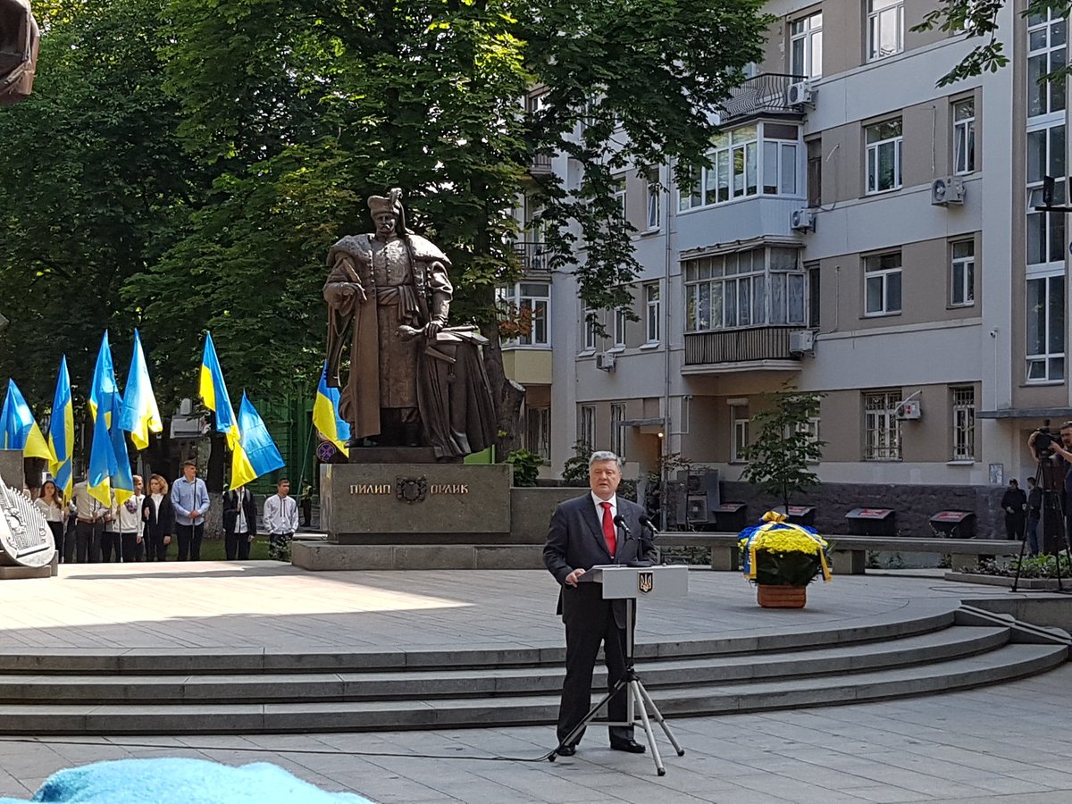 Президент Петр Порошенко пообещал внести в Раду поправки в Конституцию, которые закрепят курс Украины на вступление в НАТО и Евросоюз. Об этом он заявил по случаю Дня Конституции возле памятника Пилипу Орлику.