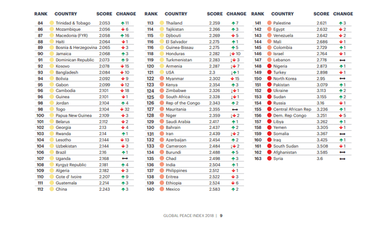 В рейтинге уровня безопасности стран организации Institute for Economics and Peace за 2018 год Украина оказалась на 152 месте.