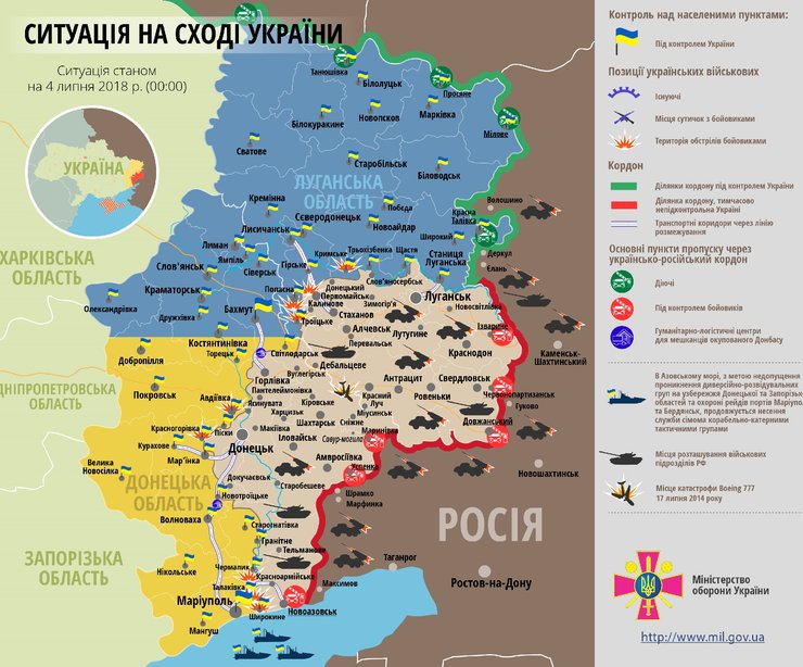 Карта военных действий на Донбассе на 4 июля