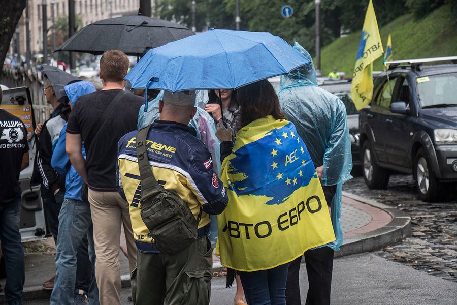 В среду, 11 июля, владельцы авто на "евробляхах" заблокировали проезд в правительственном квартале.