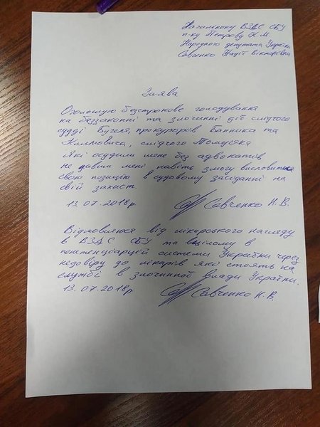 "Я оглашаю бессрочную голодовку. Я такого беспредела не видела даже в российском суде", – заявила Савченко.