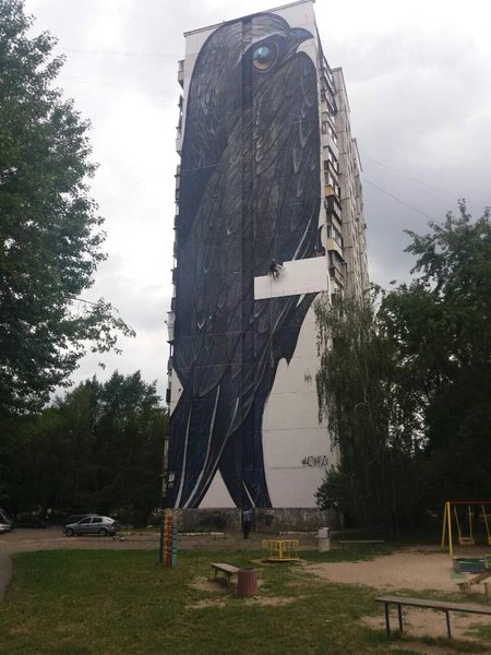 В Киеве в Святошинском районе на улице Академика Булаховского, 40 строители утеплили квартиру поверх мурала "Стриж". Об этом сообщил Гео Лерос в Facebook, который инициировал создание на многоэтажках столицы монументальных граффити.