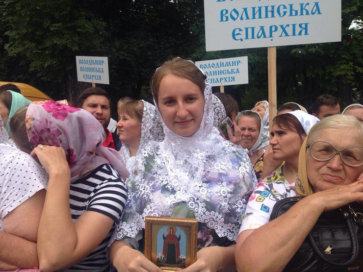 Несмотря на то, что Крестный ход был назначен на 13:30, а молебен – на 13:00, уже с самого утра на Владимирскую горку начали сходиться верующие. Многих организованно привезли из регионов. В небольшой суматохе прихожане УПЦ МП ждали одного из важнейших событий года.