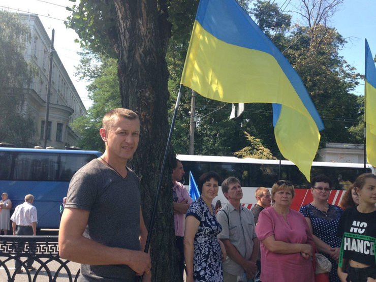 "Мы пришли с товарищами просто на этот праздник. А флаги… Ну вот вчера был ход Московского патриархата, а сегодня киевского… И мы с друзьями собрались и пришли", – объяснил он обилие желто-голубых знамен.
