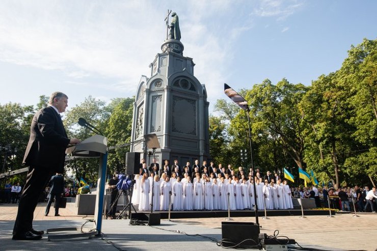 Празднование 1030 лет с момента крещения Руси князем Владимиром началось рано утром. С 8 утра на Владимирскую горку начали съезжаться политики и главы церквей. Официальное празднество открыл Петр Порошенко своей речью, в которой он снова вспомнил о предоставлении Украинской православной церкви Киевского патриархата Томоса об автокефалии.
