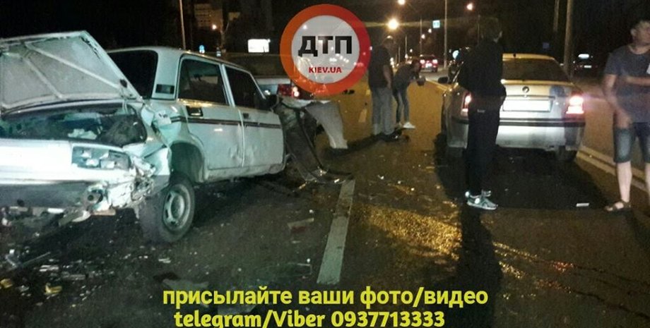 В ночь на пятницу, 3 августа, в Киеве на проспекте Победы произошло ДТП с участием четырех автомобилей. Об этом сообщает портал dtp.kiev.ua в Facebook.