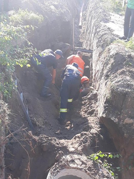 В Борисполе Киевской области двое рабочих Киевоблэнерго во время выполнения ремонтных работ оказались погребены в котловане под землей.