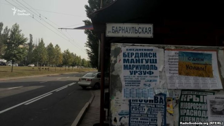 Во временно неподконтрольном Украине Донецке неизвестные расклеили желто-голубые листовки с поздравлениями в честь Дня Независимости Украины. Об этом сообщает Радио Свобода.