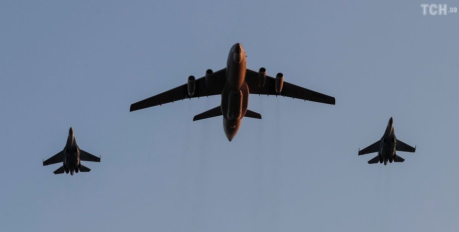 20 августа во время репетиции парада над Крещатиком пролетели 29 истребителей, транспортных самолетов и вертолетов.
