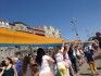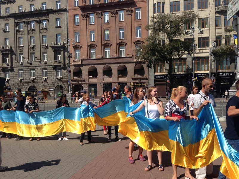 Разворачивать флаг стали возле Монумента Независимости на Майдане Независимости, а закончили – на Европейской площади. После окончания процесса разворачивания люди двинулись к Арке дружбы народов.