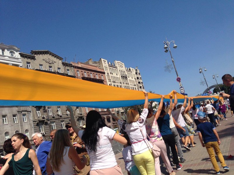 В центре Киева в День Независимости растянули 400-метровый национальный флаг.