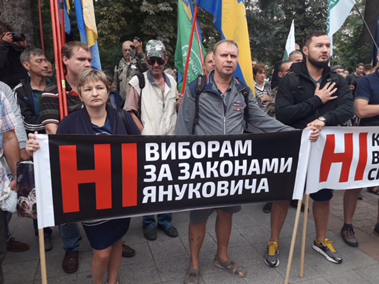 "Нет выборам по закону Януковича!" Под таким лозунгом у Рады собрались на акцию протеста полторы тысячи человек, представляющих несколько десятков политических сил и общественных организаций