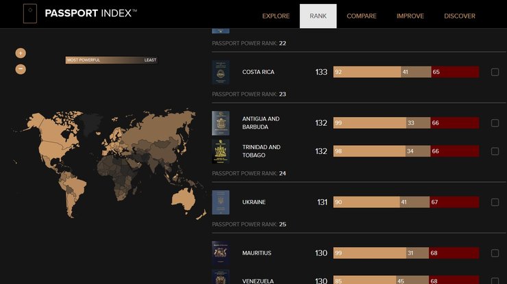 Украинский паспорт занял 24-е место в мировом рейтинге предоставляемых возможностей