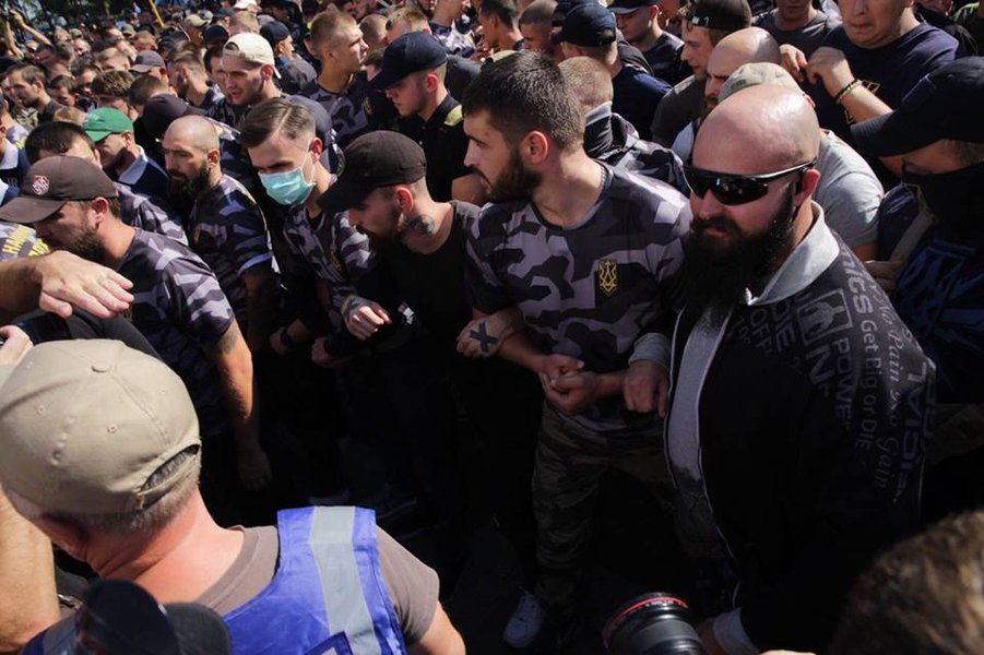 Напомним, Нацкорпус под зданием парламента требует от Рады принять законопроект № 3433, предусматривающий упрощенную процедуру получения украинского гражданства для воевавших в АТО иностранцев, а также мораторий на выдачу ветеранов АТО другим государствам (в частности, России) и миграционную амнистию.