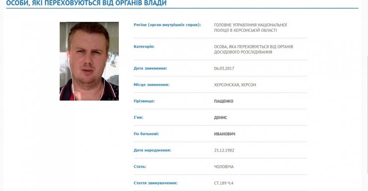 В розыск Пащенко объявили 6 марта 2017 года, а в международный - 1 ноября 2018 года.