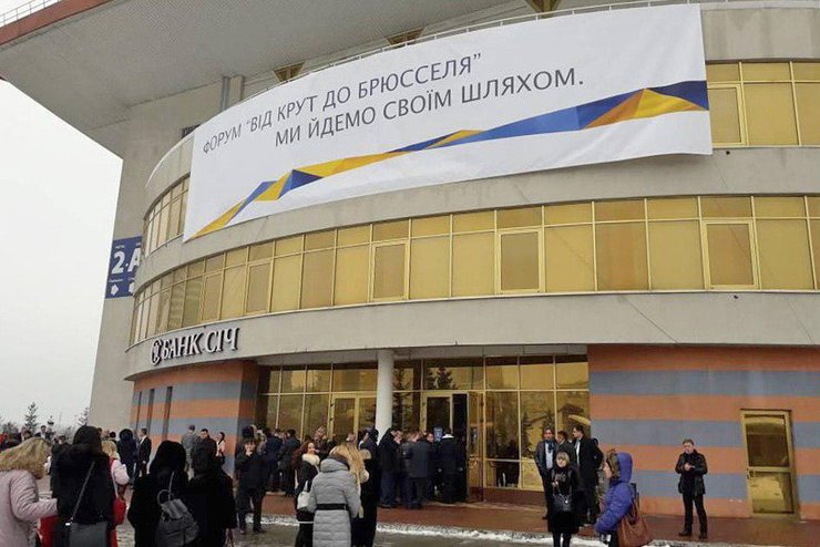 Религиовед Игорь Козловский, освобожденный из застенок Донецка в декабре 2017 года, на вопрос, когда же и он успел оказаться в партийном строю, отвечает: "Я еще не там. Это же общественный форум! Хотелось бы услышать о подтверждении взятого ранее курса. Вот на экране же написано: "от Крут до Брюсселя". И это главное – мы движемся именно туда. И это не только исторический путь, но и цивилизационный".