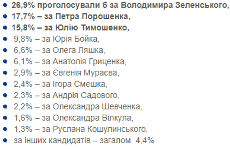 - Согласно предыдущим соцопросам Зеленский также занимал первое место, конкурируя с Петром Порошенко и Юлией Тимошенко.