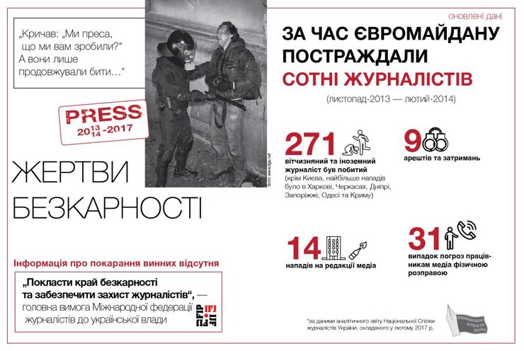 Всего с ноября 2013 по февраль 2014 года от рук титушек и правоохранителей пострадал 271 журналист.