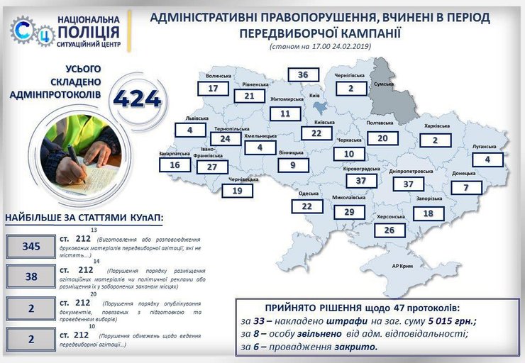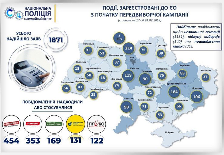 Министр также назвал политсилы, в отношение которых поступило больше всего сообщений о нарушениях. По его словам, БПП касается 454 обращения, Батькивщины – 353, Самопомочи – 169, Гражданской позиции – 131, Радикальной партии – 122.
