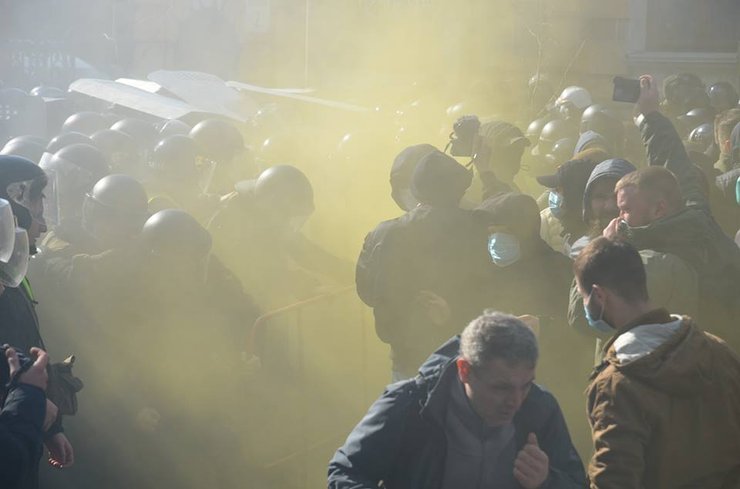 Также отмечается, что участники акции уже пришли под стены Администрации Президента, где начались столкновения между митингующими и правоохранителями. Об этом на своей странице в Facebook сообщил корреспондент издания РБК-Украина Владислав Красинский.