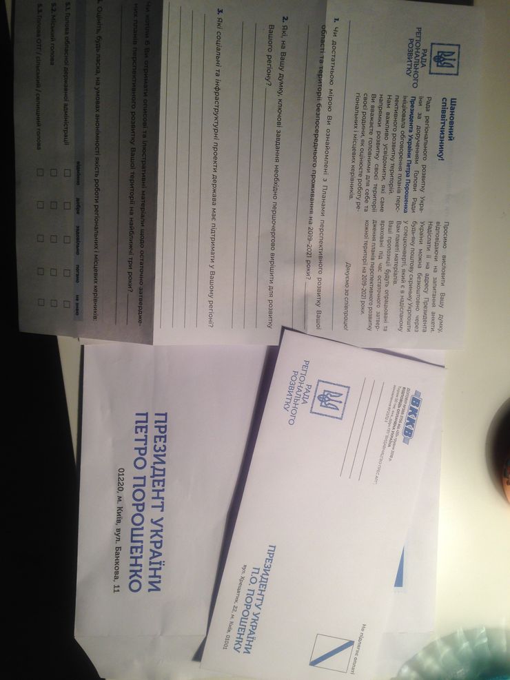 В таких посланиях украинцам предлагают ответить на несколько вопросов касаемо развития регионов и отослать ответ президенту.