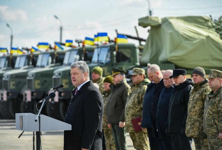 Президент Петр Порошенко во время своей поездки в Староконстантинов в Хмельницкой области передал украинским военным более 420 единиц вооружения и военной техники. Об этом сообщает пресс-служба главы государства.