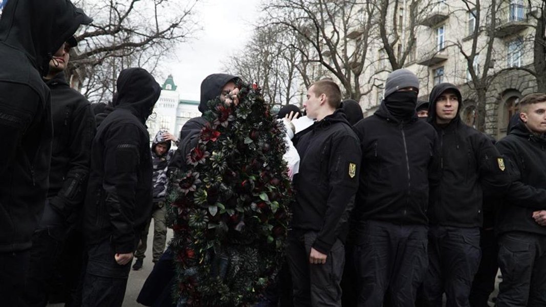Таким образом националисты решили показать, что нынешняя власть убивает Украину