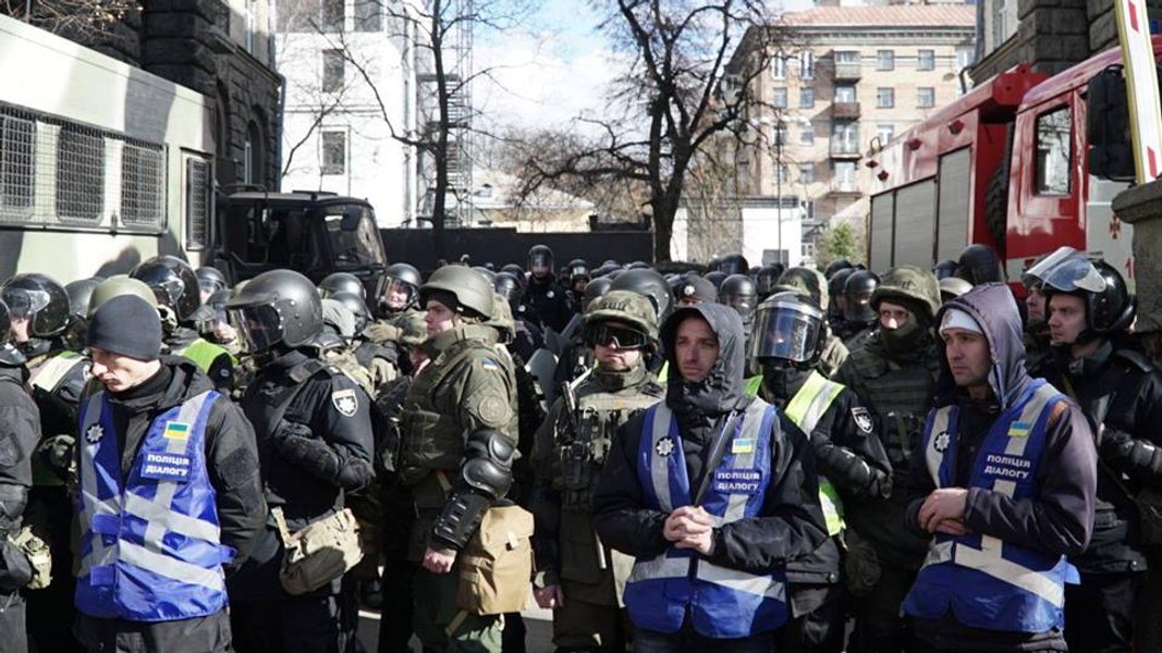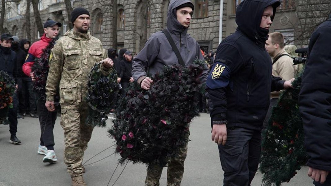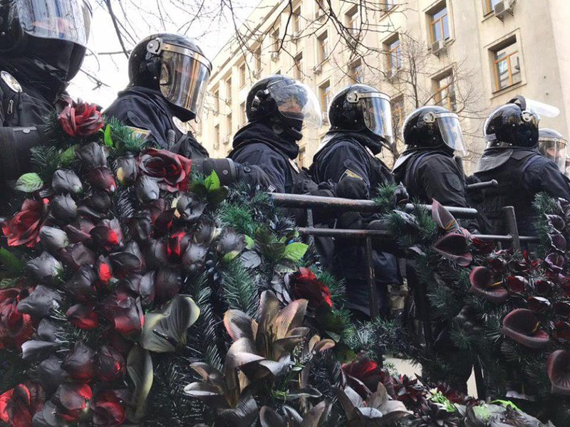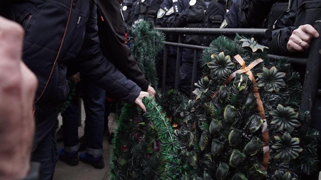 Националисты принесли поминальные венки под Администрацию президента и положили их возле правоохранителей.