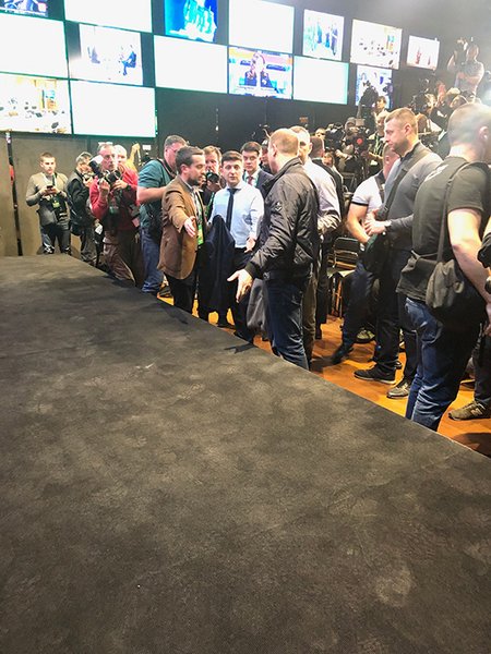 К 19:00 начинают съезжаться журналисты, гости, команда. Среди гостей - экс-министр финансов Александр Данилюк, и бывший министр экономического развития и торговли Айварас Абромавичюс, народный депутат Сергей Лещенко и политолог Дмитрий Разумков. Все они консультируют Владимира Зеленского и принимают активное участие в его предвыборной кампании. Однако говорят, что в случае победы, понятия не имеют, чем будут заниматься. "Никто не распределял места. Будем решать проблемы по мере поступления", отшучивается Сергей Лещенко, одетый, правда, не в зеленый (цвет команды, все-таки), а в желтый свитер.