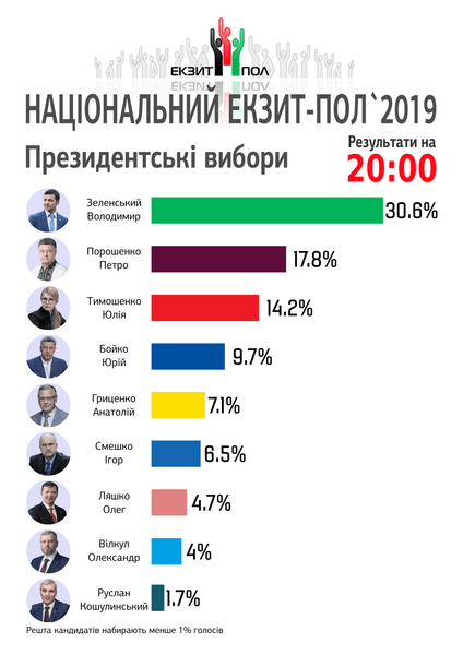 Финальные данные национального экзит-полла: Зеленский и Порошенко сохраняют лидерство