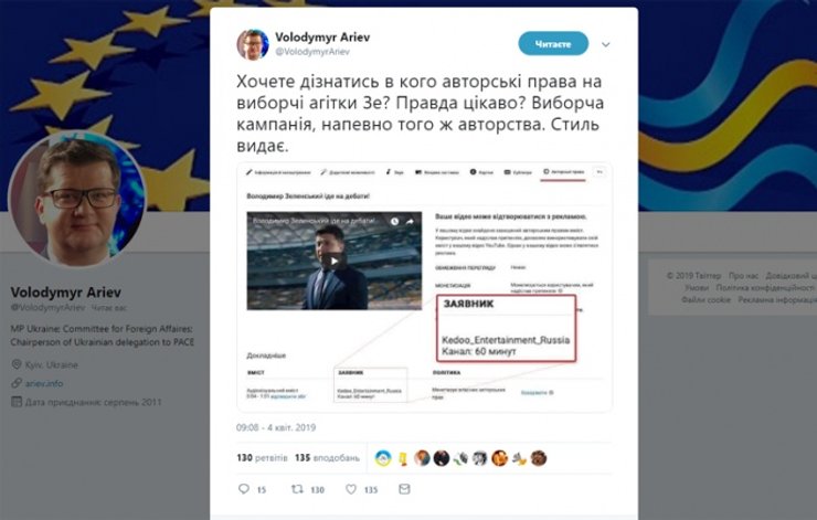 В Сети появился фейк о Владимире Зеленском, что якобы корпоративные права на его видеоролик о дебатах на НСК "Олимпийский" принадлежат российской компании Kedoo Entertainment Russia. Сегодня утром его успели распространить несколько народных депутатов от фракции БПП.