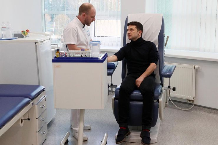 Когда все закончилось, Зеленский попросил воды и поинтересовался, когда будет результат анализов. "Через три дня", – ответил сотрудник клиники, который брал у него кровь. А когда услышал от девушки, ведущей, видимо, через телефон онлайн-трансляцию, что за действом следят семь тысяч человек, воскликнул: "Очень неплохо "Евролаб" прорекламировали!". "Это просто замечательно! Такой рекламы у нас еще не было", – не скрывая радостных эмоций, произнес медработник.