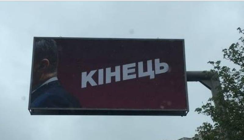 - 14 апреля в разных городах Украины появились билборды в стилистике предвыборной агитации Петра Порошенко с надписью "Конец".