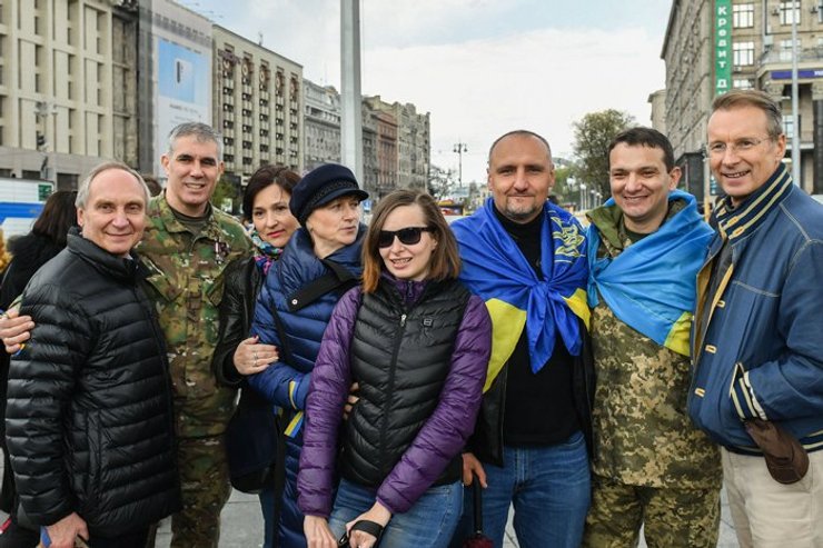"Меня очень радует наша самоорганизация, стремление убедить тех граждан, на которых упала пелена изящных телевизионных технологий. Мы раскроем им глаза. Это не выбор между Зе и Порошенко, как кому-то кажется. Мы с вами знаем точную ставку на этих выборах - продолжит Украина свой путь в ЕС и НАТО, или опять все будет спущено на тормоза ", – сказал президент.