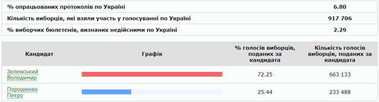 Центральная избирательная комиссия Украины обработала более 6 % протоколов.