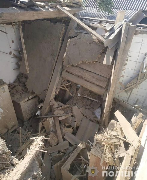 "В 07:30 прилет реактивного снаряда в жилой дом в городе Золотое Попаснянского района Луганской области. Семье, которая живет в этом доме, чудом повезло: в момент обстрела супруги были во дворе. В этом городе сейчас проживает около 10 тысяч человек, у которых так начинается утро. Полицейские на месте", – сообщил Князев.