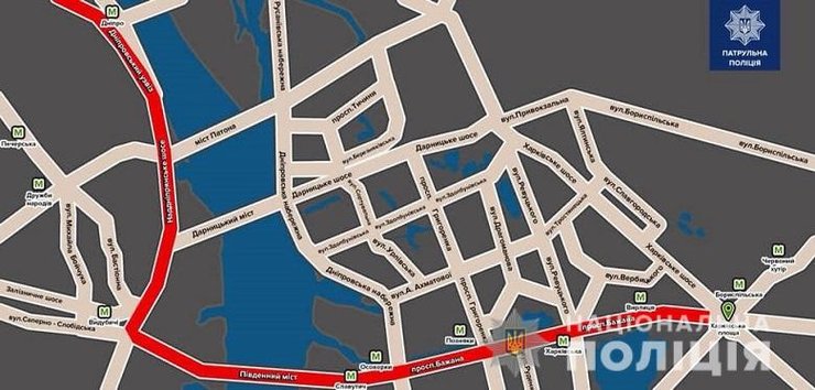 - Надднепрянском шоссе — от Южного путепровода до моста Патона;