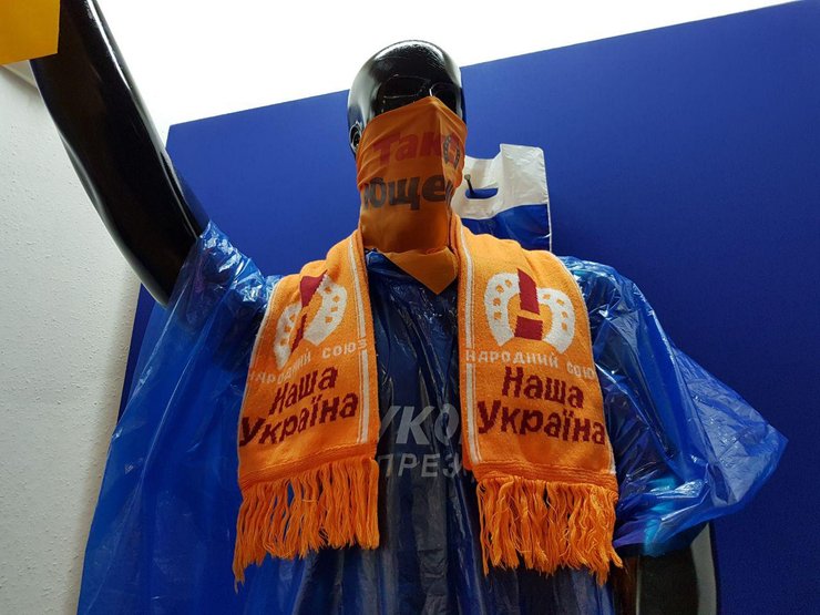 Также на выставке присутствуют и реконструкции исторического "боя" 2004 года в виде двух манекенов одетых в дождевики "Партии Регионов" и партии Виктора Ющенко "Так!" соответственно. В руках они держат набор "презентов" с логотипами партий на пакете.