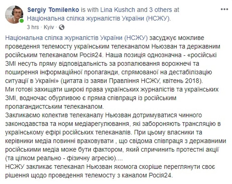 Но менее, чем через сутки телемост был отменен. В пресс-службе NewsOne заявили, что телеканал стал жертвой информационных атак, а в адрес журналистов поступают угрозы.