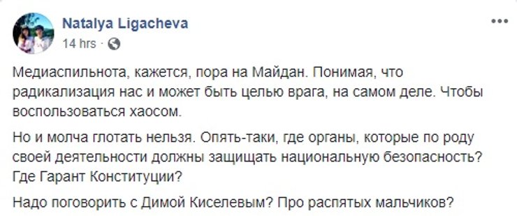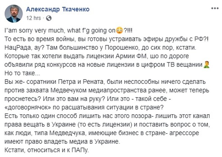 Расскритиковали идею телемоста и в президентской партии "Слуга народа". Гендиректор "1+1" Александр Ткаченко (№9 в избирательном списке") предложил лишить NewsOne лицензии. А Никита Поруаев (№99) намекнул, что организация подобных телемостов может тянуть на статью Уголовного кодекса о госизмене. Отметим, что ГПУ уже оперативно открыла такое дело по покушению на госизмену путем предоставления информационной поддержки подрывной деятельности против Украины.