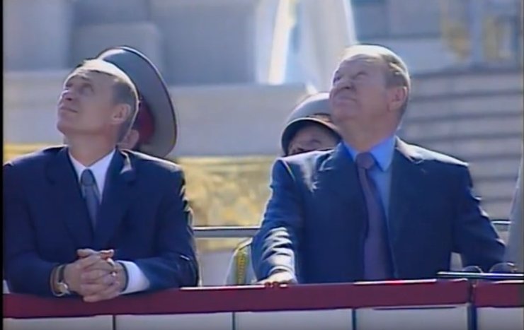 Президенты Путин и Кучма наблюдают за авиашоу в небе над Киевом