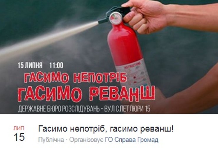 Также директора ГБР возмутил тот факт, что участники акции принесли с собой огнетушители, которые в ответ заявили, что таким образом проиллюстрировали название своей акции "Гасим хлам, гасим реванш". К слову, акция под ГБР была организована общественной организацией "Справа Громад", которая поддерживает партию "Европейская Солидарность" в общем, и политику пятого президента в частности.