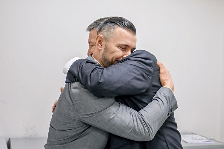 Надо отдать должное украинской диаспоре: в дни заседаний зал суда под завязку заполняли люди в вышиванках. "Поддержка со стороны диаспоры была очень сильной. Кто не мог приехать, передавали Виталию письма с ободряющими словами. Нам не разрешали с ним общаться, но поскольку зал суда очень маленький, мы все же могли переброситься парой фраз", — рассказывает Олеся Татарин, глава итальянского отделения Всемирного движения патриотов Украины. А Олесь Городецкий добавляет: "За то, что мы ходили на все суды, публиковали посты в защиту Виталия, нас называли фашистами, и это очень больно".