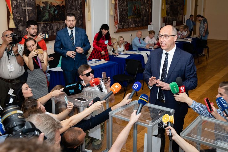 Сразу после голосования лидер пропрезидентской политсилы поспорил с бабушкой, которая также пришла принять участие в народном волеизъявлении. Избирательница утверждала, что команда Зеленского "играет под дудку России" и не работает на благо Украины. Разумков в ответ усомнился, что его критик правильно понимает позицию "Слуги народа" и пообещал трудиться только на благо государства.