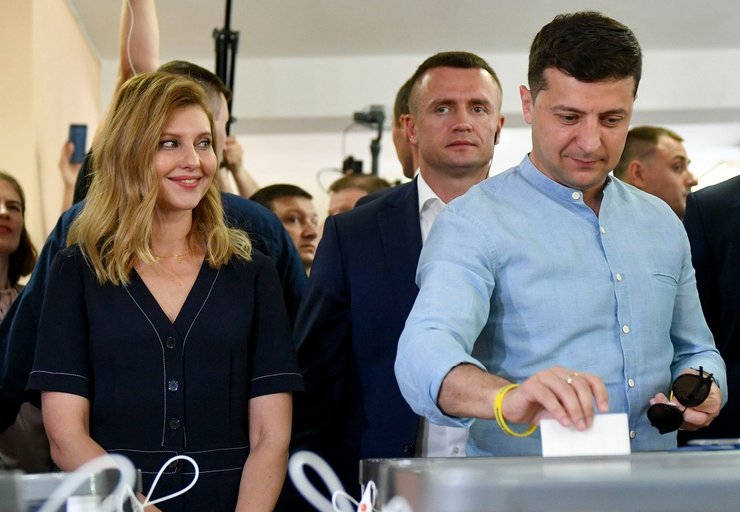 Президент Владимир Зеленский вместе с женой Еленой проголосовал в Киеве на Оболони.