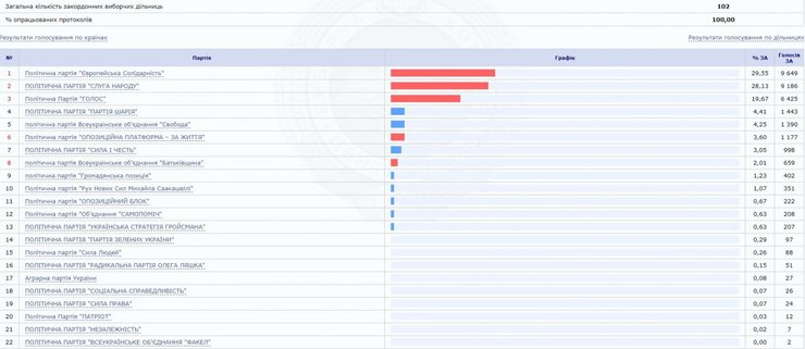 ЦИК обработал 100% бюллетеней с зарубежных участков. Лидер – "Евросолидарность"