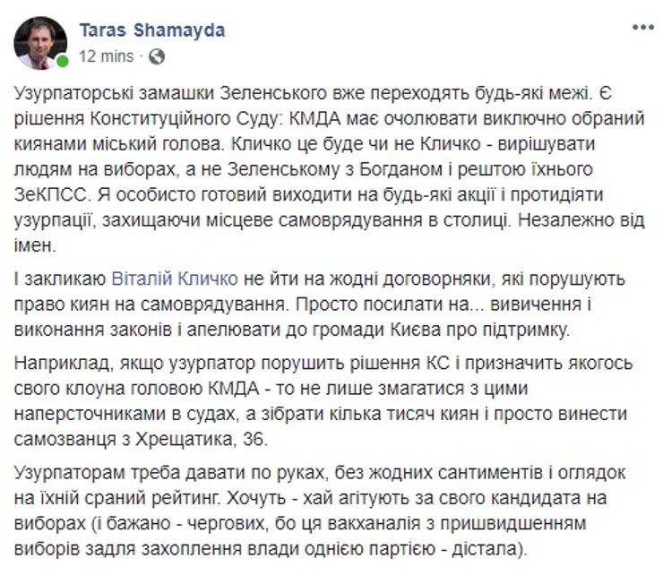 Однако в соцсетях на заявление Андрея Богдана отреагировали. И если некоторые были довольны тем, что власть над Киевом будет неким образом перераспределена, то многие практически слово в слово повторили слова Кличко о том, что это будет узурпация.
