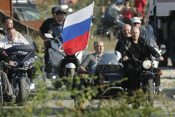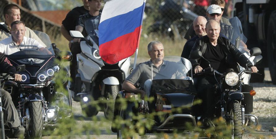 Путин в коляске "Урала" покатал Аксенова по оккупированному Крыму