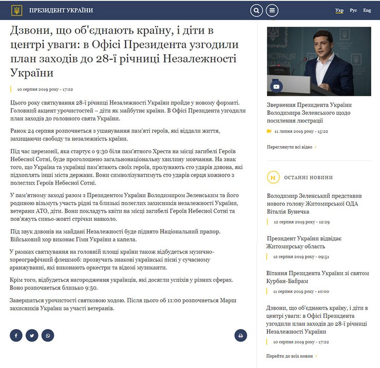 Официальное сообщение на сайте президента датировано 10 августа 2019 года