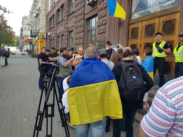 У здания Госбюро расследований Порошенко встречала немногочисленная акция поддержки.